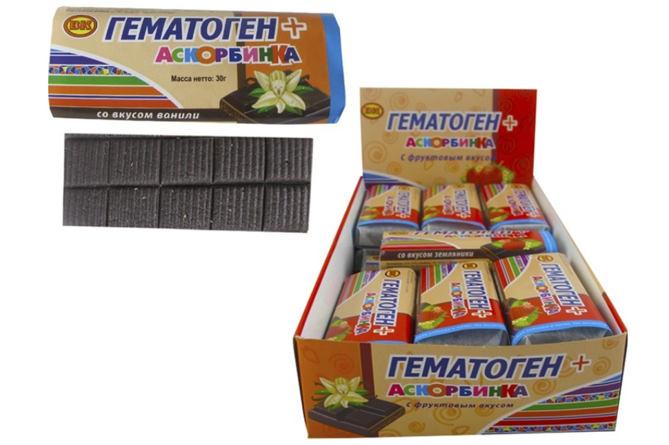 кондитерское сахаристое изделие "гематоген=аскорбинка" со вкусом ванили