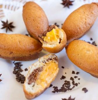 Овальные кексики из двух видов теста: верх - ванильный, дно - шоколадное; с апельсиновым кремом