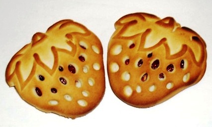 Сахарное печенье в виде крупной милой ягодки с настоящим клубничным джемом