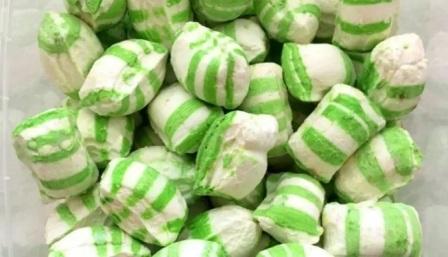 Конфеты зеленого цвета в форме подушечек, со вкусом яблока
