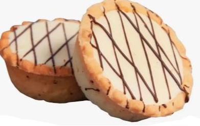 Небольшие песочные тарталетки заполнены нежным кремом и украшены нитями шоколада